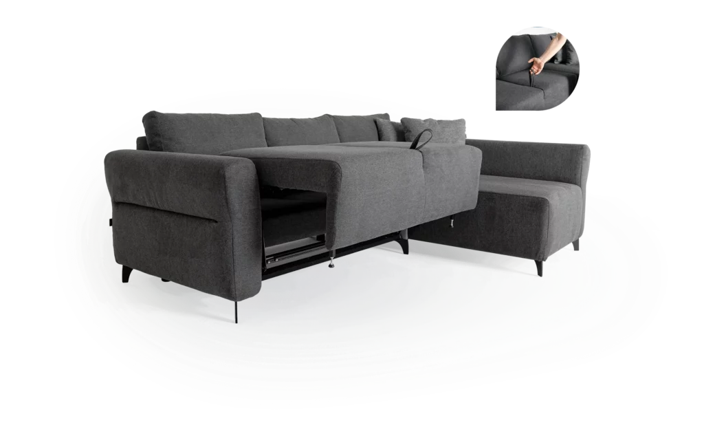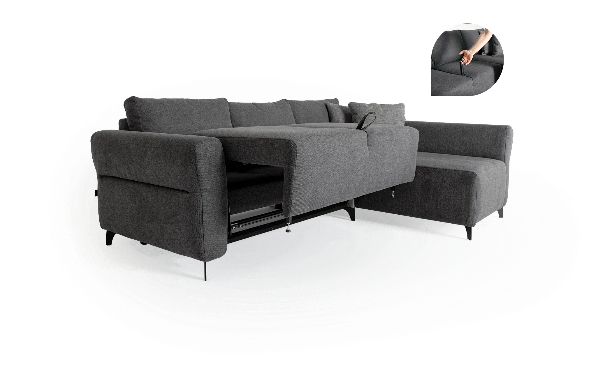 Per quanto riguarda il rivestimento, hai due opzioni tra cui scegliere: il tessuto di categoria B, una microfibra altamente resistente, e il tessuto di categoria C, strutturato per un tocco di eleganza. La struttura del divano è realizzata con tealio in multistrato e legno di abete, garantendo stabilità e durata nel tempo. I confortevoli sedili sono realizzati in poliuretano espanso ad alta resilienza, supportati da un solido telaio. Inoltre, lo schienale, composto da tre camere indipendenti, è imbottito con fiocco di memory foam per una sensazione morbida e avvolgente.